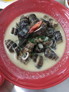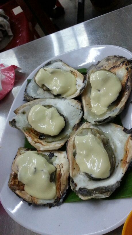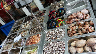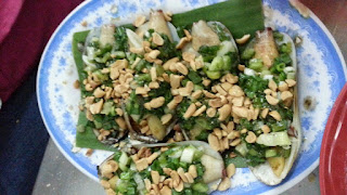 Grilled shell or we called Kepah in Malay - They just grilled the shell and add onion spring , ground nut and sesame oil as topping. They flavor it with salt and some black pepper powder.